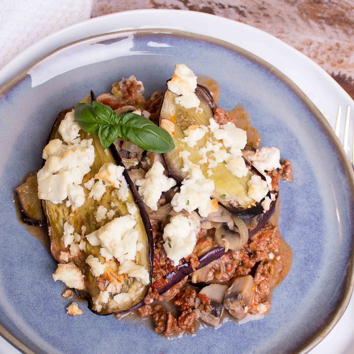 Lasagne ist so eins der „geht immer“ Gerichte. Meine Familie liebt diese Art von Auflauf. Die klassische Lasagne mit Nudelplatten war eins der wenigen Rezepte, denen wir echt hinterhergetrauert haben. Diese Low Carb-Variante mit gegrillten Auberginenescheiben ist allerdings ein würdiger Ersatz. Eigentlich sogar mehr als ein Ersatz, denn wenn man mal ehrlich ist, schmecken die meisten Nudeln nämlich nach: genau, nichts. Daher vermisst man sie auch nicht in der Lasagne. Wir finden: dieses Rezept gehört in die Kategorie „für Gäste geeignet“. Na dann mal los.