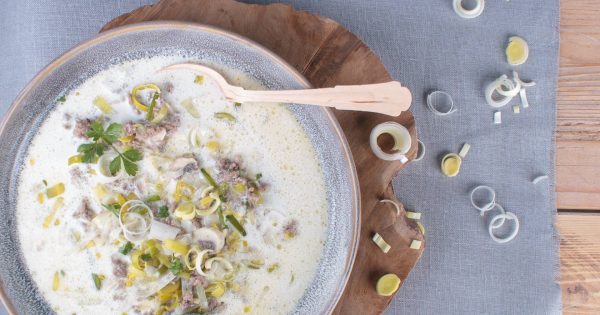 Während der Winter draußen noch einmal alles gibt, machen wir es uns drinnen gemütlich, oder? Dazu passt eine wärmende Käse-Lauch-Suppe, perfekt zur Low Carb High Fat Ernährung.