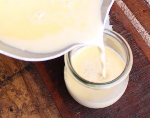 - 4 Dessertgläser heiß ausspülen und Sahne bis ca. 1 cm unter dem Rand einfüllen. Gläser verschließen und im Kühlschrank für mindestens 2 Stunden fest werden lassen.