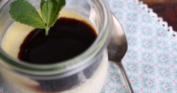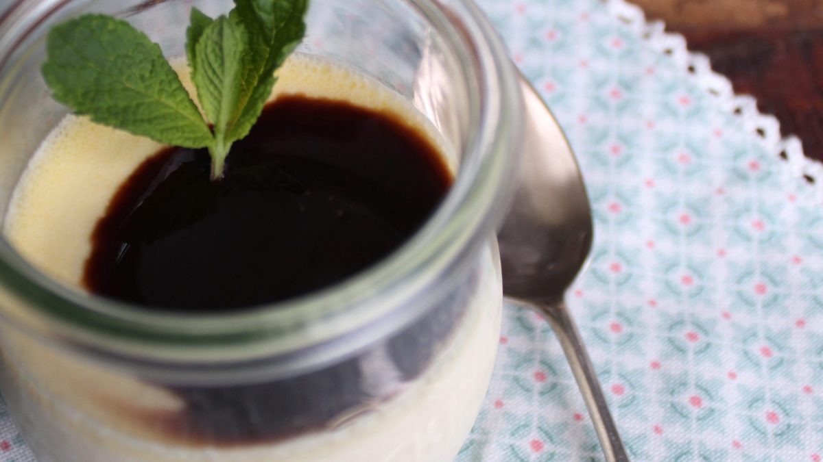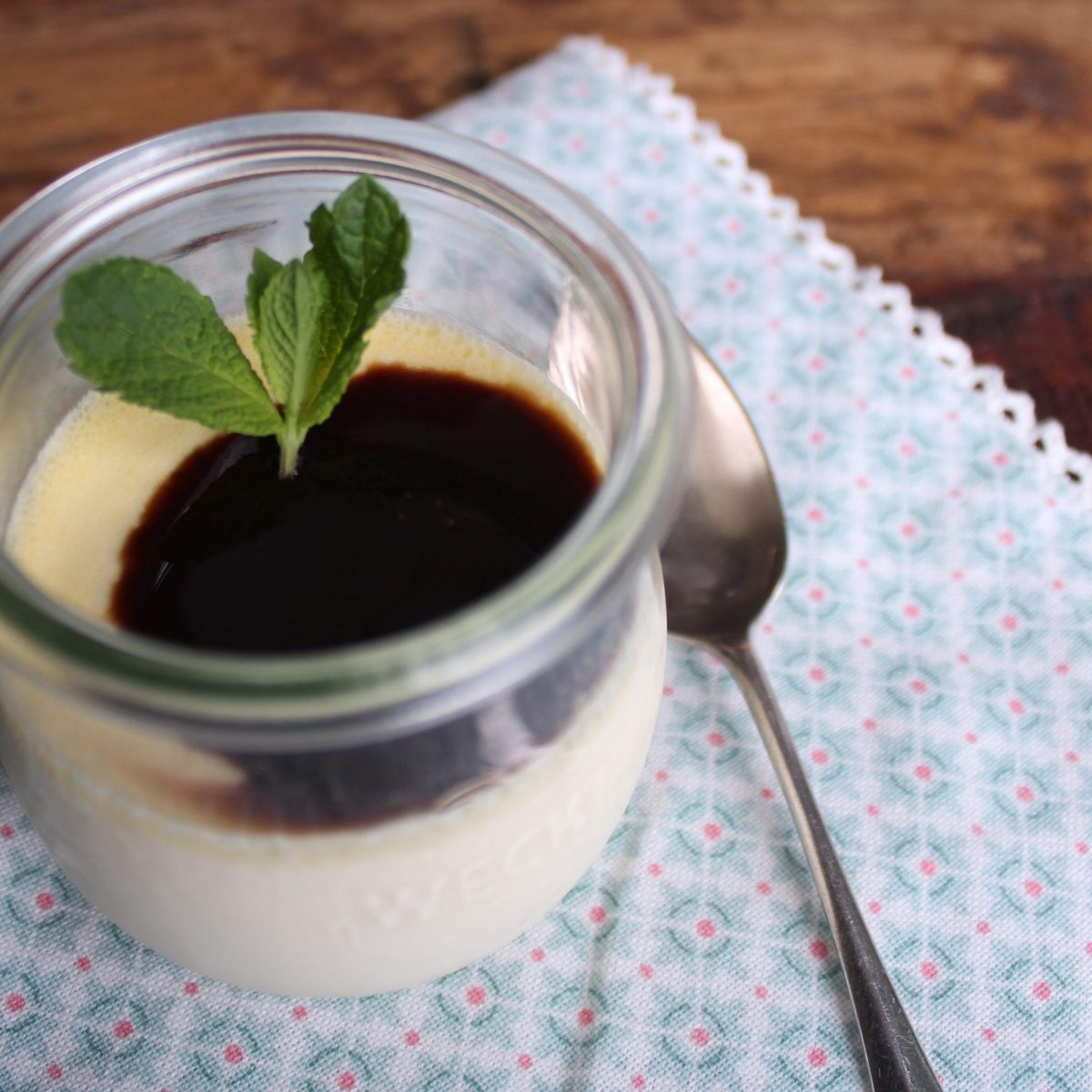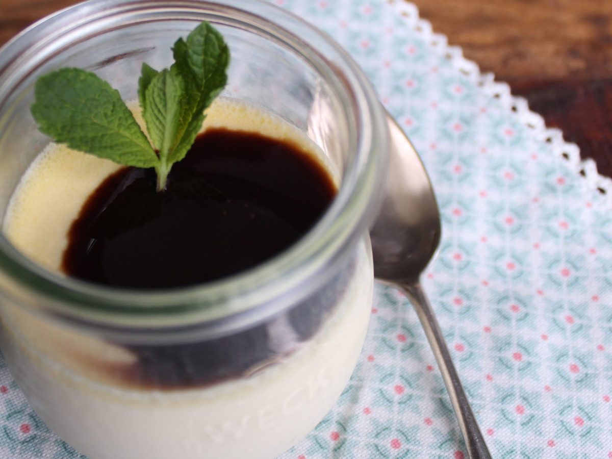 Low Carb Dessert: Panna cotta mit Minze und dunkler Schokoladensoße