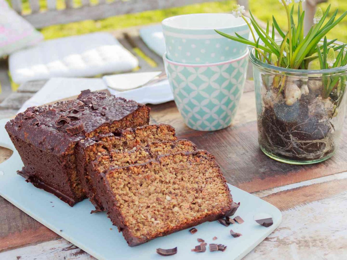 - Schokolade mit Kokosöl im Wasserbad schmelzen. Den Schokoladenguss über dem abgekühlten Kuchen verteilen. Nochmals abkühlen lassen und dann in der Frühlingssonne genießen – lasst es euch schmecken!
