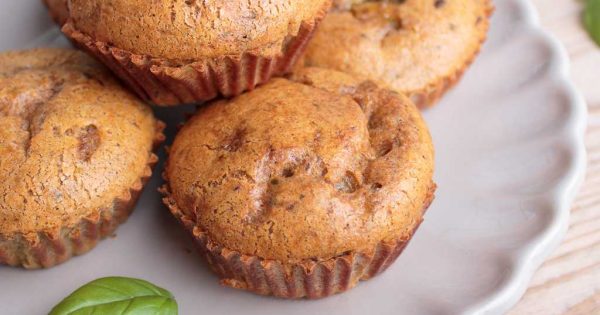 3. Basilikum hacken, mit Haselnüssen, Collagen und Eiern verrühren und gründlich mit Salz und Pfeffer würzen. Vorbereitetes Gemüse mit Bratfett unterheben und die Masse auf 12 Muffinförmchen verteilen. Etwa 30 Minuten im Backofen garen, bitte Stäbchenprobe machen!
